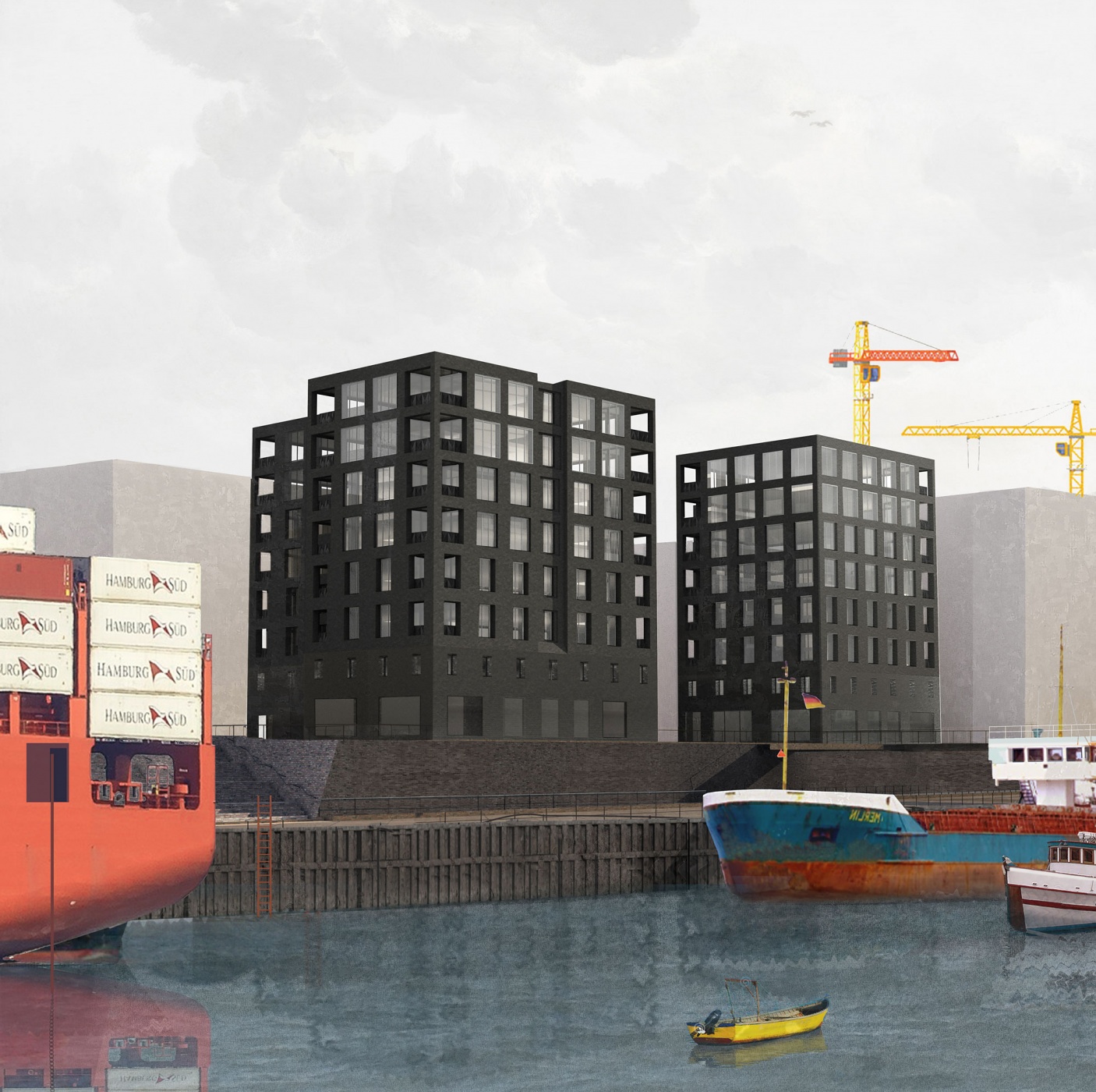 Two residential buildings form the centre of the masterplan for Baakenhafen, a new sustainable rebuilding of the Hafencity harbour, Europe’s largest inner-city development project. As a port city, Hamburg represents a long history of maritime trade, specifically with London – both were members of the Hanseatic League, a diplomatic association of cities that promoted the exchange of industry, culture and architecture.